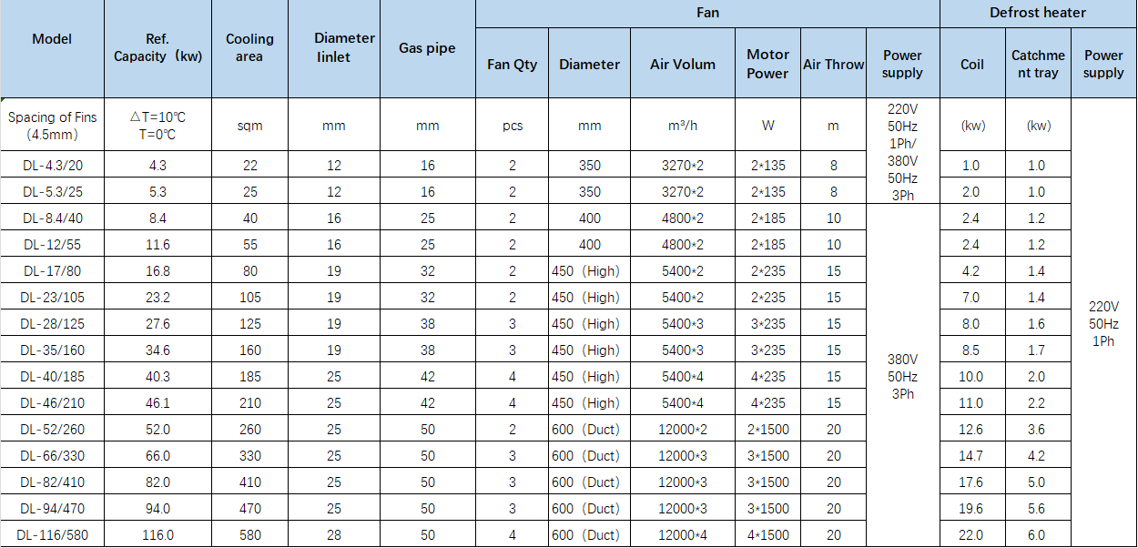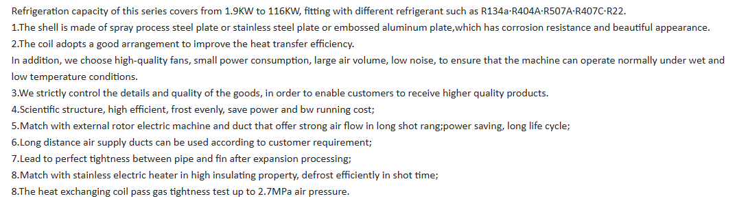● The design width of the air cooler is reasonable, and the spacing between the fan blade and the aluminum fin is greater than 1/3 of the fan blade diameter to ensure sufficient effective air volume;